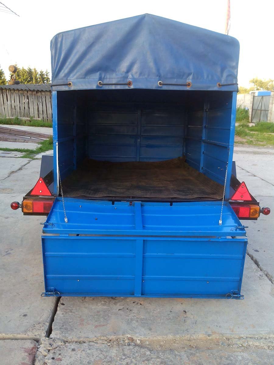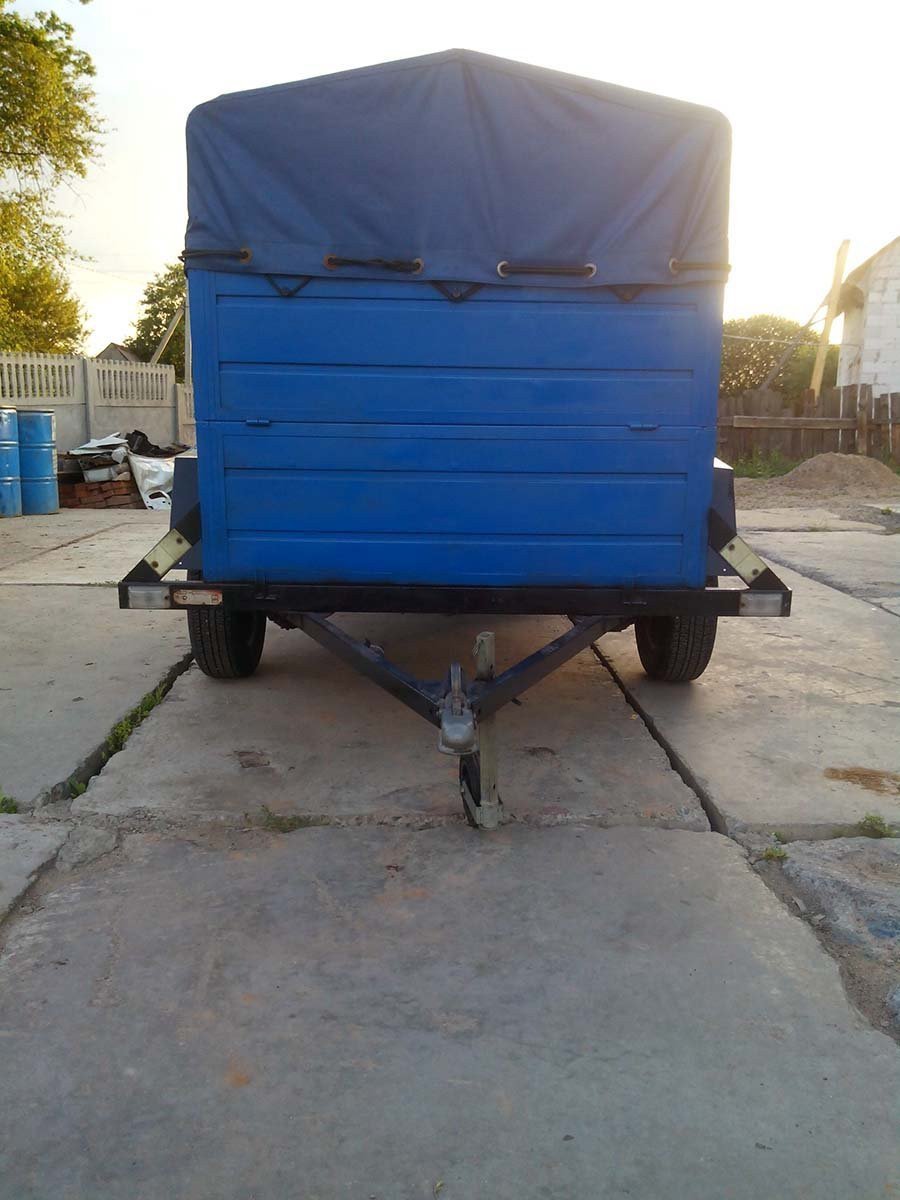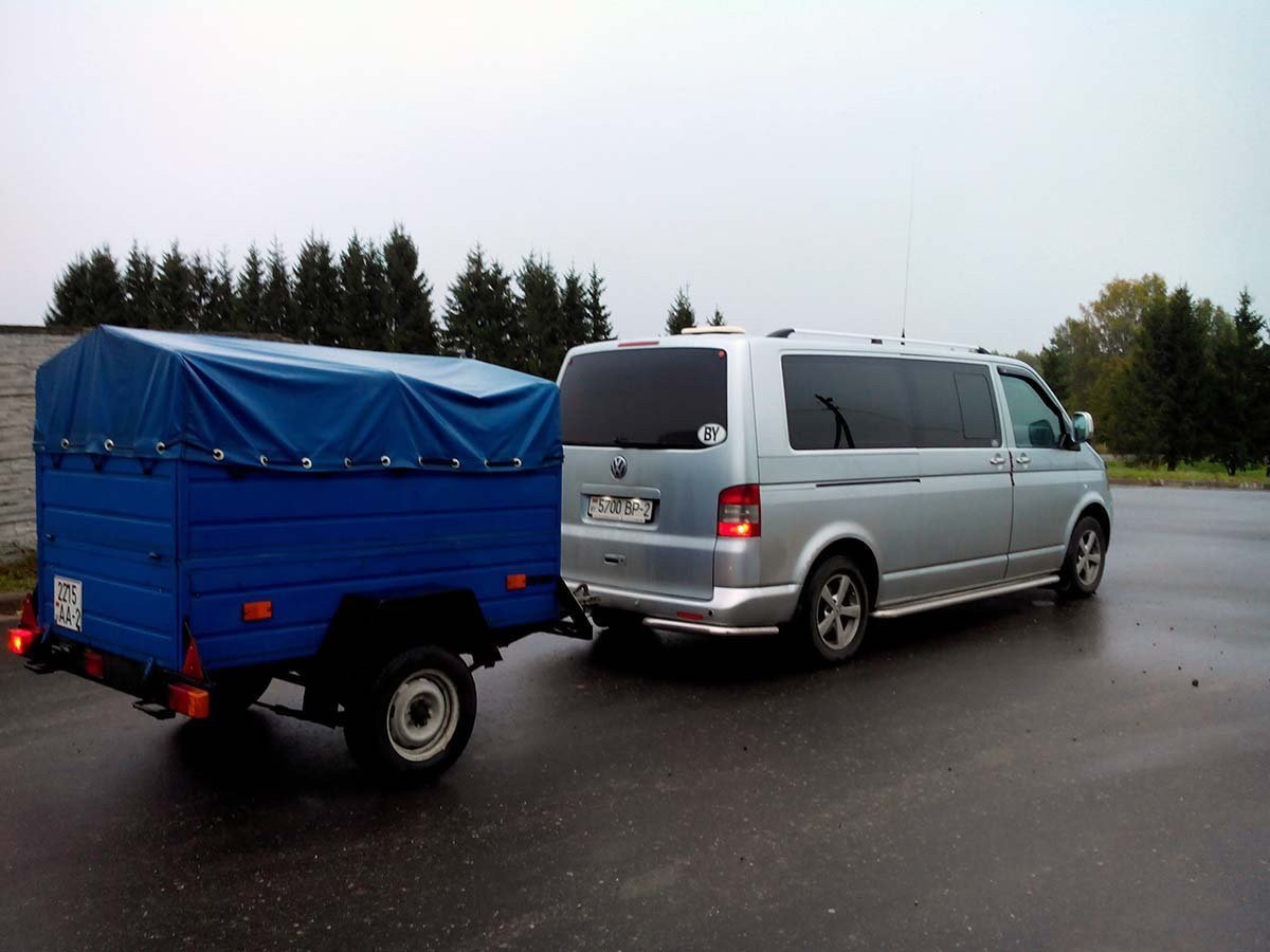 Прицеп БелАЗ 81203 для буксировки за микроавтобусом. Оснащён металлическими бортами и мягким тентом. Грузоподъемность 500 кг. Размеры грузового отсека: длина 185 см., ширина 120 см., высота 110 см.