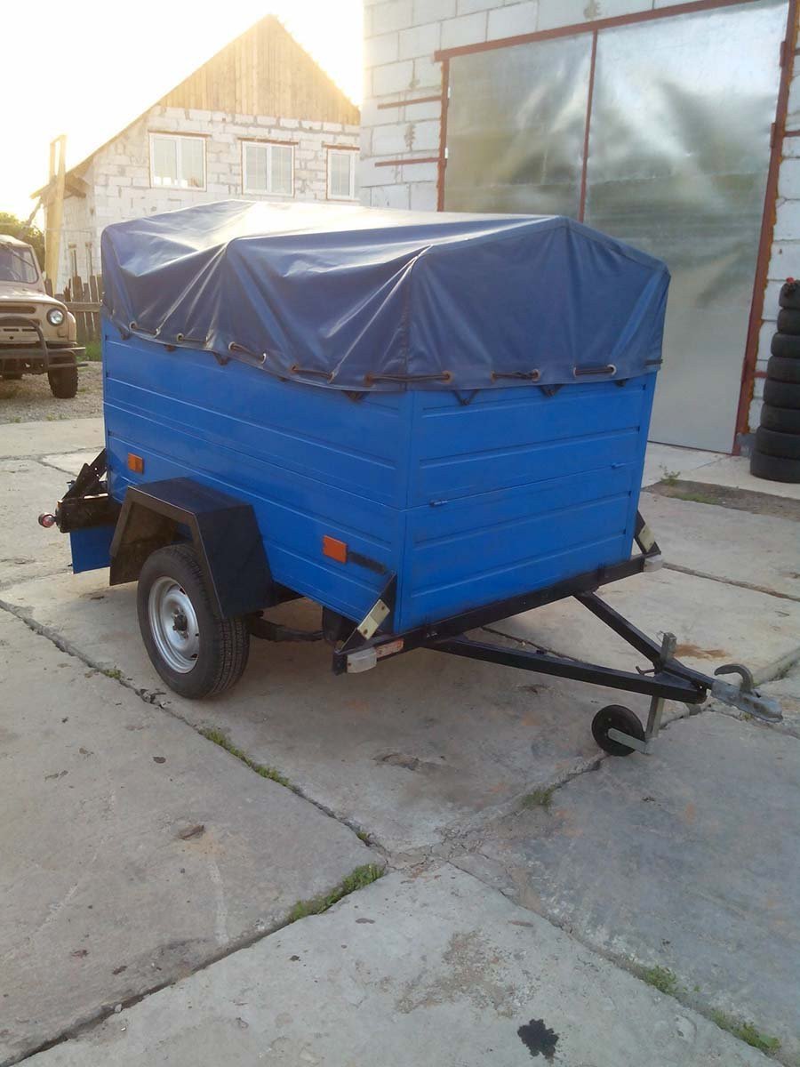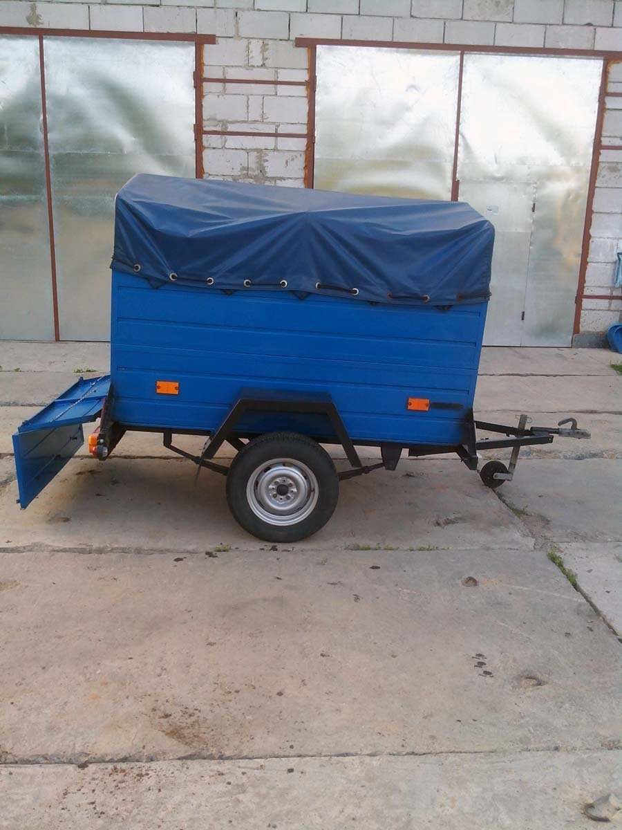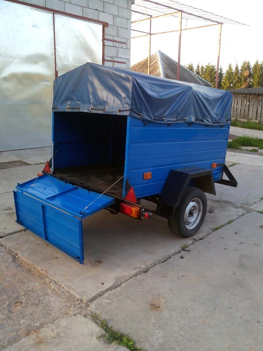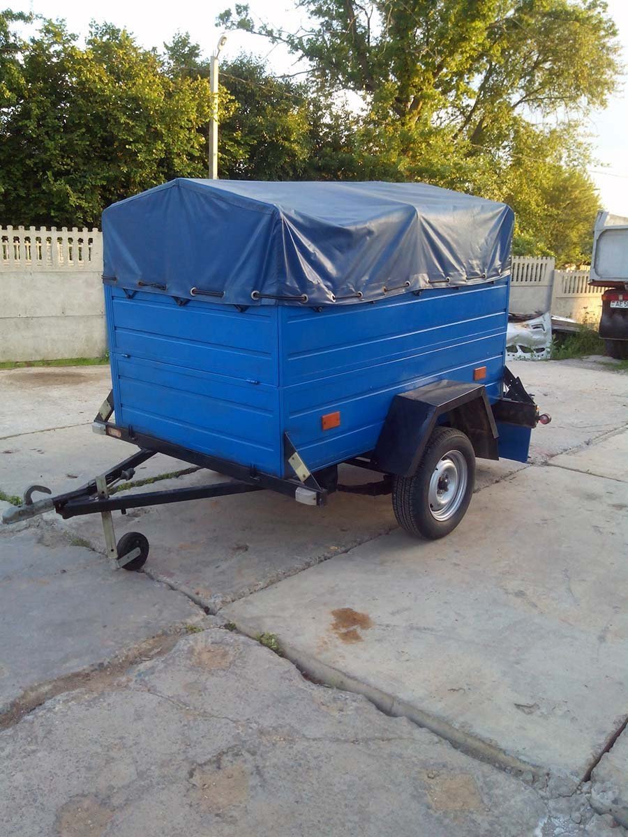 Прицеп БелАЗ 81203 для буксировки за микроавтобусом. Оснащён металлическими бортами и мягким тентом. Грузоподъемность 500 кг. Размеры грузового отсека: длина 185 см., ширина 120 см., высота 110 см.
