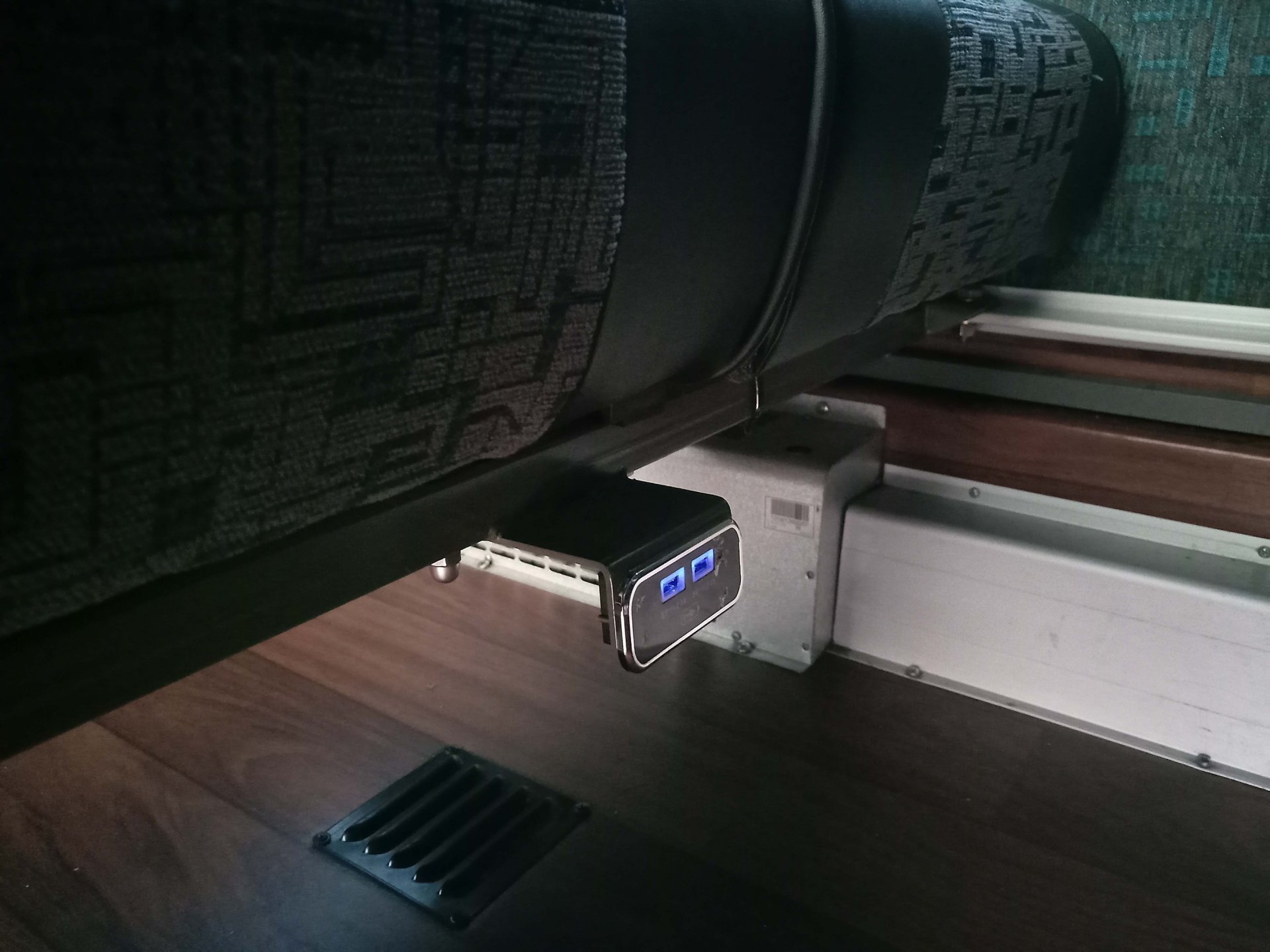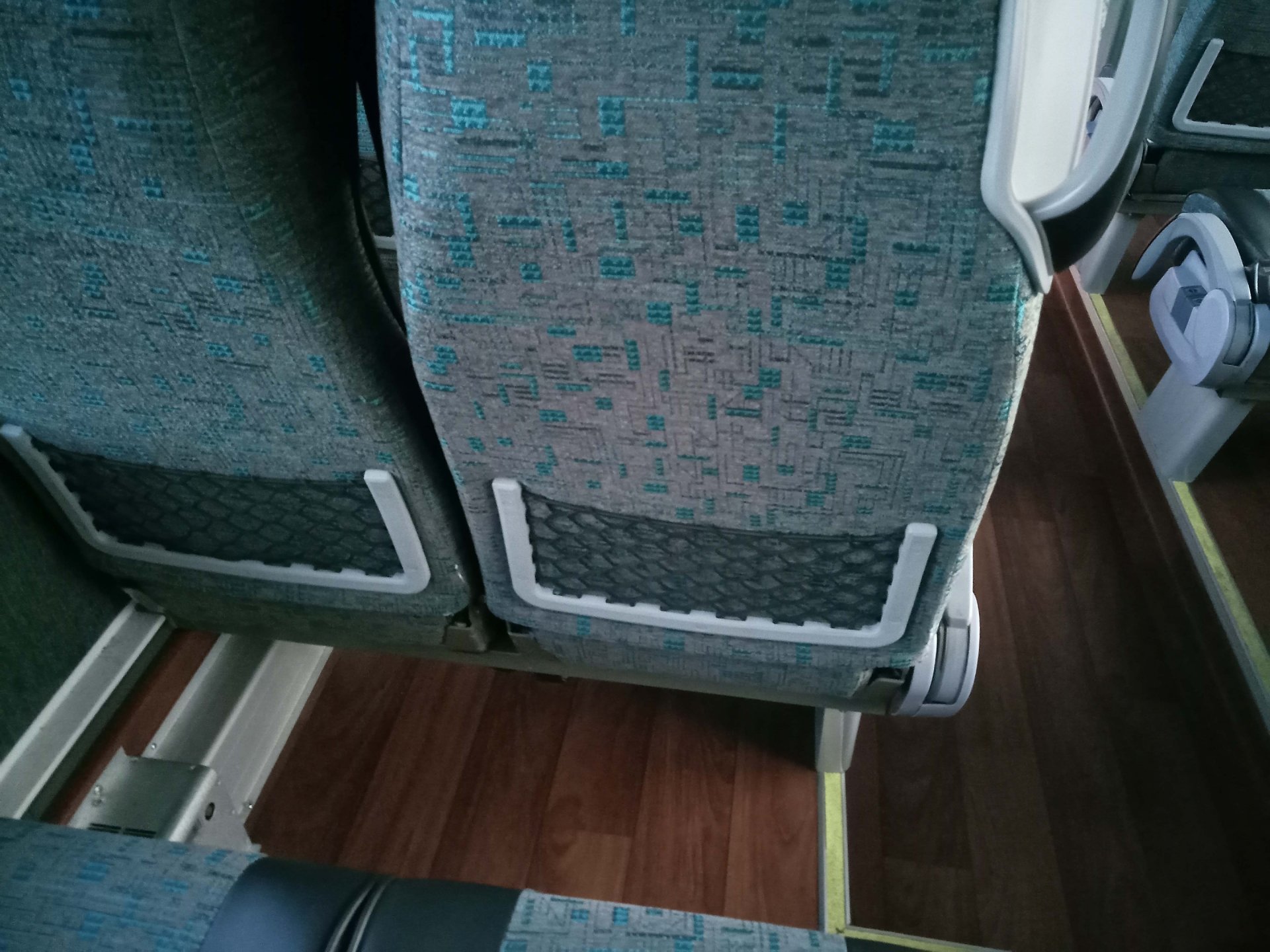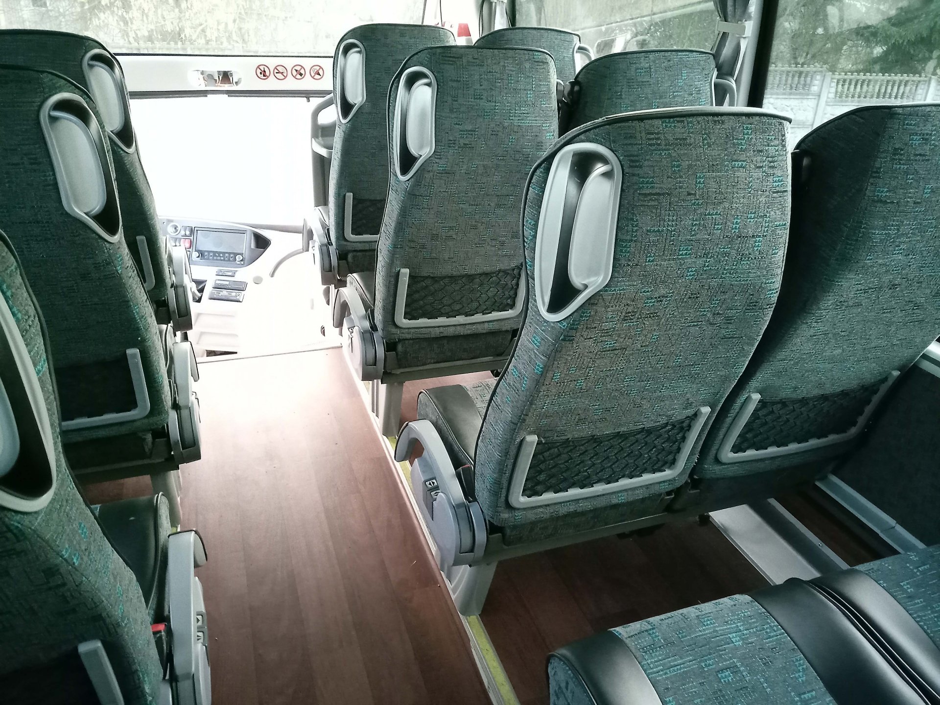 Просторный салон оснащен удобными сиденьями - пригодными для дальних путешествий. Сиденья мягкие с кожаными вставками, имеют регулировку по углу наклона и оборудованы подлокотниками и механизмом сдвига в проход, "газетными" кармашками и USB зарядными устройствами.