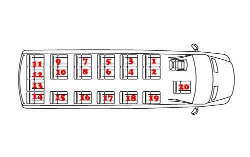 Автобус на 20 пассажирских мест + 1 водитель. Мягкий салон, регулируемые сиденья с подлокотниками, панорамное остекление, принудительная вентиляция салона, кондиционер, люк, автономный стояночный отопитель, аудиосистема, TV, багажный отсек. По предварительному согласованию есть возможность буксировки прицепа для перевозки багажа.