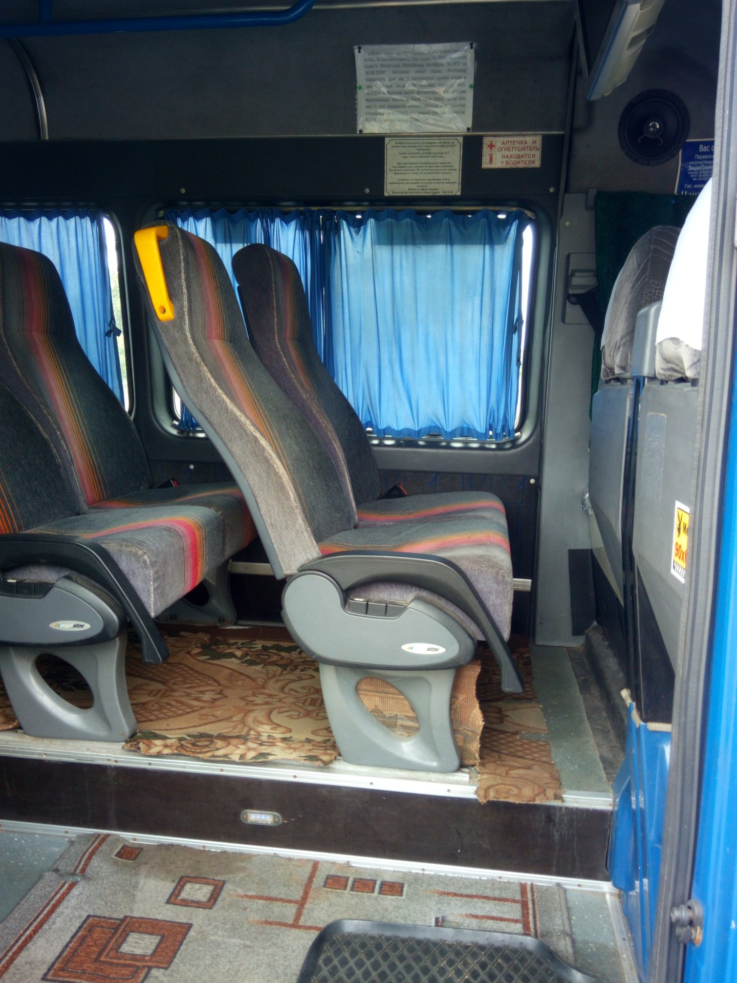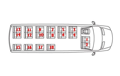 Автобус вместимостью 18 пассажирских мест + 1 водитель. Мягкий салон, регулируемые сиденья с подлокотниками, шторки, принудительная вентиляция салона, люк, автономный стояночный отопитель, аудиосистема, поручни, TV-DVD. Для перевозки большого количества багажа имеется возможность буксировки прицепа.