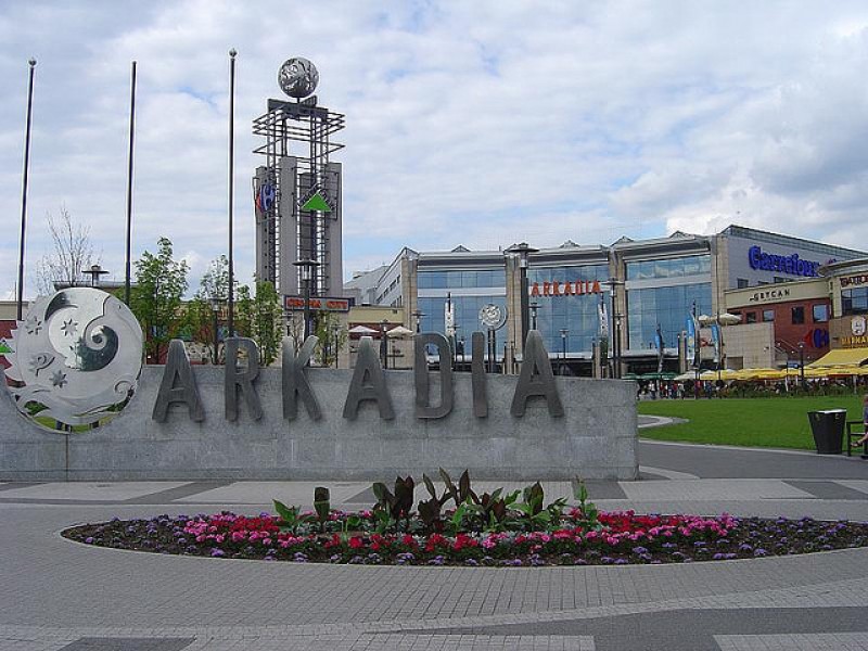 Самый крупный комплекс Варшавы. 3-х этажное здание порадует шопоголиков не только своими товарами, но и своим стилем. Говорят если вы чего то не нашли в "Аркадии", то вы это не найдете нигде. Здесь предоставлены товары многих мировых брендов, а также просто повседневная утварь для вас и вашего дома. Девушки порадуют себя качественной косметикой, огромный выбор которой обязательно заставит побаловаться и купить для себя любимой хотя бы помаду или тушь. А для мужчин уставших бегать по просторам магазинов со своей второй половинкой или просто уставших от шопинга путешественников работает кинотеатр, в котором вы сможете отдохнуть и насладиться просмотром фильма.